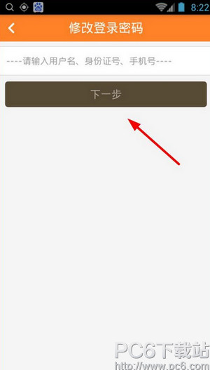 3、来到“修改登录密码”页面,输入自己的“用户名、身份证号、手机号”点击“下一步”;
