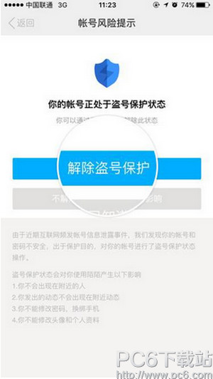 1、在盗号保护状态页面,选择“解除盗号保护”