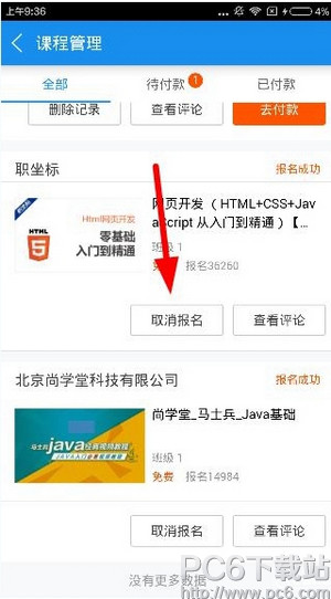 2、然后选择要取消报名的课程,点击“取消报名”,