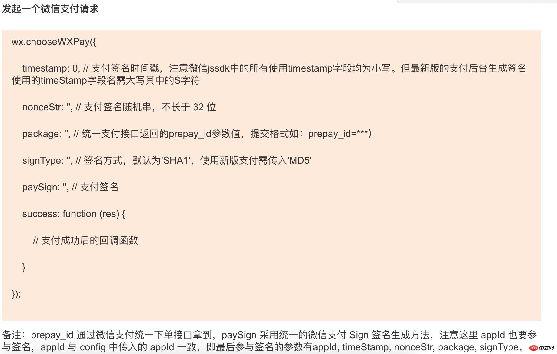 如果你只需要在公众号中调用支付,两个方法都可以,笔者由于已经使用js-sdk接入了其他功能,所以这里就选择了chooseWXPay方式。