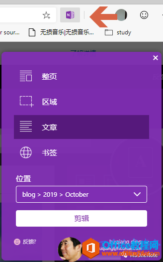 5、安装完成后就会在新Edge浏览器右上角看到,?用相应的账号登录就可以剪辑网页了。