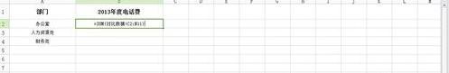 2.使用SUM函数SUM,在2013年办公室电话费用栏中输入“=sum”(比较数据)。C2:N11)”并按回车键获取2013年的办公室电话费用总额。