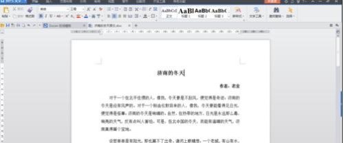 首先在电脑上打开已经编辑的WPS文字文档,比如我们打开老舍先生《济南的冬天》文字文档,如下图所示。