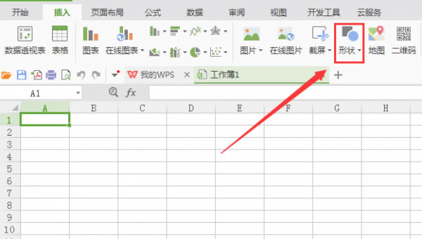 3、点击插入选项,在其工具区里找到形状选项,如图所示: