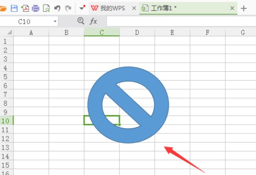 6、点击禁止符号选项,使用鼠标左键在编辑输入区里拖拽鼠标左键就画出来了该形状,如图所示: