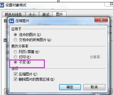 如果插入的图片比较大,默认的200dpi其实也是压缩了,如果要保留原图可以选择【不变】