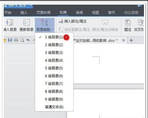步骤三:然后去 各个标题 先选中标题,然后,在 目录级别 将原来的 文本文档 变成 一级目录 或者 二级目录 即可