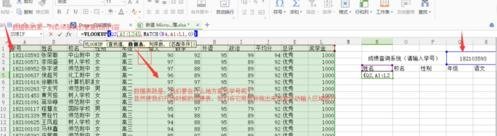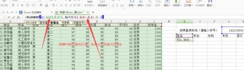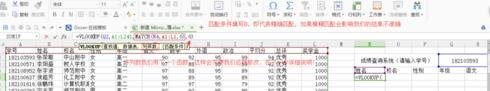 在姓名下面的单元格填写函数=VLOOKUP(Q2,A1:L241,MATCH(N4,A1:L1,0),0)确定后,输入学号后就会再次出现学号相对应的姓名。