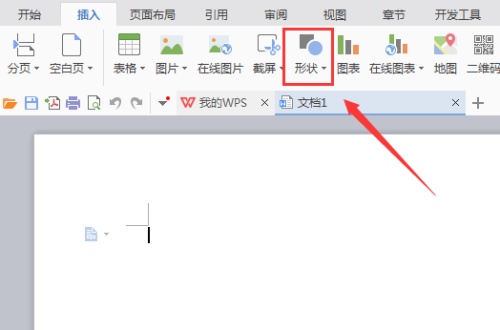 3、点击插入选项,在其编辑工具区里找到形状选项,如图所示: