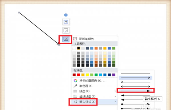 6、最后是设置箭头的样式,同样操作,单击“形状轮廓”,单击“箭头样式”,单击选中自己喜欢的样式就可以了。