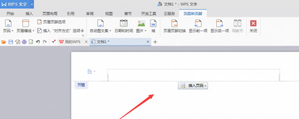 7、点击页眉和页脚选项,在编辑输入区里就出现了输入框,如图所示: