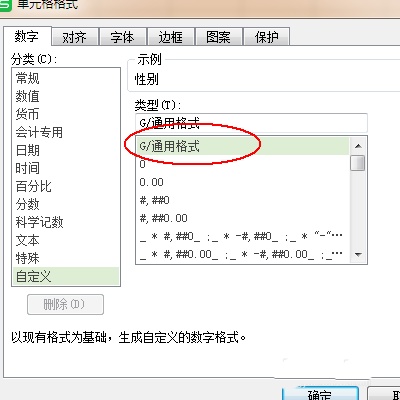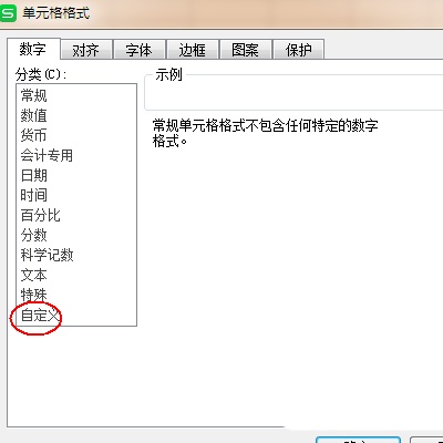 4、在“自定义”中选择“通用格式”。