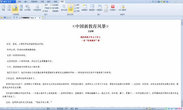 单击屏幕右上角的“显示/隐藏功能区”按钮(如图4)即可隐藏WPS2012的功能区,进一步增大阅读区域(如图5)。
