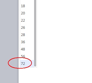 4、点击这个数字框旁边的倒三角,往下拉并单击它的最大字体号。我们发现是72.