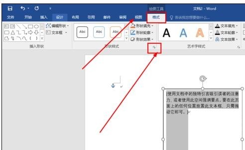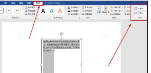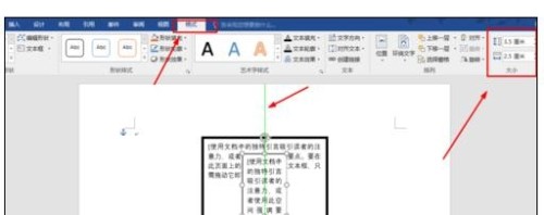 通过“格式”选项卡中的“大小”进行设置文本框的高度和宽度。可以设置成9厘米和7厘米。如图,设置完成。