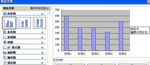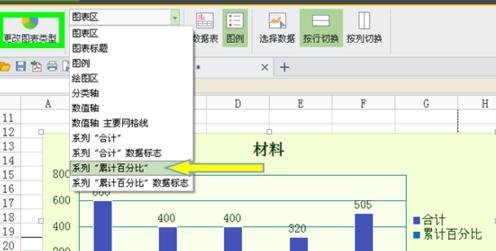 就完成了大概的基础了,点击图表区,选择上面的”累计百分比“,再点击旁边的”更换图表类型“。