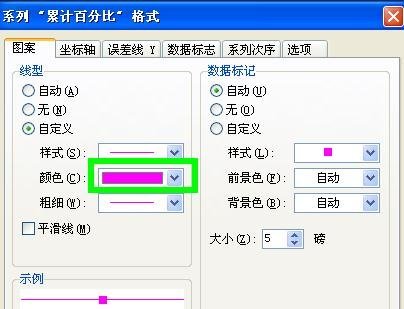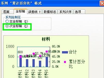 然后点击上面的”所选内容格式“切换到”坐标轴“→”次坐标轴“,如果”图案“那一栏的颜色是白色的话,一定记得换个颜色,不然会看不到,确定。
