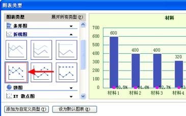 接着点击”折线图“,选择第二行的第一个,然后确定。