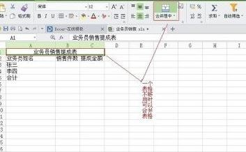 一般表头需要在所有表格的总上方,此时需要合并表格如图,点击合并单元格即可实现。