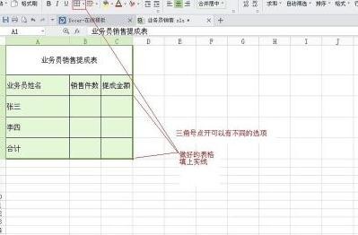 打开表格,在第一行输入自己表格的名头(例如业务销售提成表)