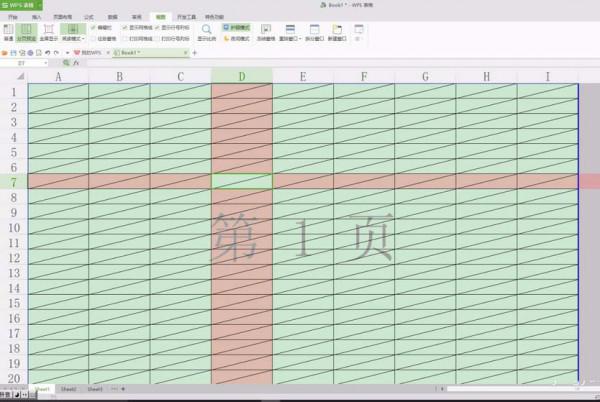 4、分页预览。可以看到当我们点击分页预览按钮时,在画面中多出了一个显示当前页码、页分隔的虚线。这种模式很方便我们在设计打印版面。可以很方便地在需要分页的地方增加、删除分页符。