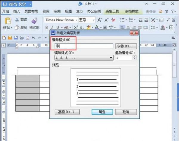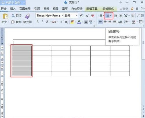 ①启动WPS文字2013,绘制表格,然后选中第一列,单击菜单栏–开始–项目编号。