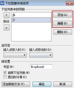 (4)对于带有下拉选项的电子问卷,使用相同的方法。插入一个下拉表单域并双击它。编辑文本内容。