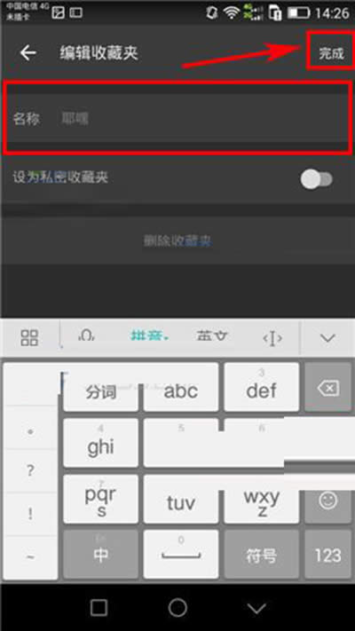 3、接着点击【编辑收藏夹】,最后输入新名称,点击【完成】即可更换。(如下图)