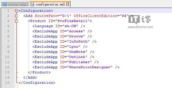 • ExcludeApp表示不被安装的组件,你可以看到这里面不包括Word、PowerPoint和Excel,我们的目的就是只安装这三个组件。你可以根据自己的需要删除或增加ExcludeApp。