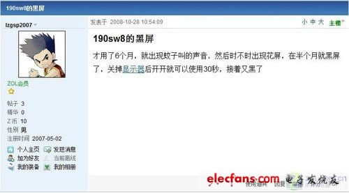 论坛网友反映自己的液晶显示器出现黑屏