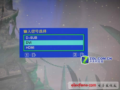 当将输入信号通过DVI-D接口输入,而液晶显示器的IC芯片还将输入源选择在D-Sub接口时,画面当然无法显示出任何画面信息,从而显示出全黑色,这也被很多网友称为“黑屏”。此时,我们按下“切换输入源”按键(通常是SOURCE或INPUT按键),让IC芯片重新进行选择。