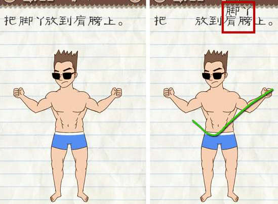 1.把脚丫放到肩膀上,只要把问题上的脚丫放在肩膀上面即可通关了。