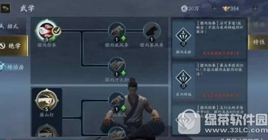 招式可用对应武器拓本升级,升级不增加百分比,只增加额外伤害,有些招式有特性,需装备特定武器触发;