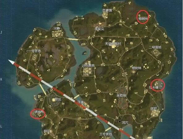 椰树林:资源量级2,资源等级1,位置贴近地图边缘,几乎没人落点,危险系数1。