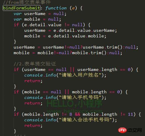 提交表单使用的是自带的 bindsubmit 事件组件,在 button 组件上添加 formType=”submit” 即可,还有点需注意的是使用表单提交功能时 input 需加上 name 属性,这个传递方式是以键值对的形式传递的。
