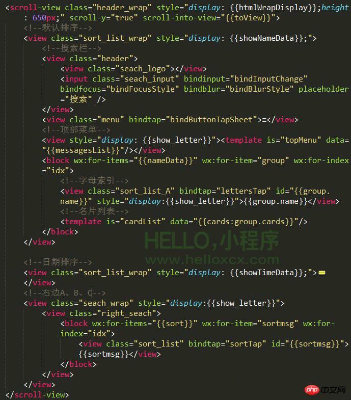 首先名片列表,名片上的字母索引都在 scroll-view 里面,这个 scroll-view 必须设置好固定的高度,设置成 100% 与 100vh 是无效的,y 轴的滚动开关打开,scroll-into-view 需要跳转到它子元素的 id 上。