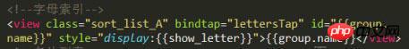 首先是右边小索引布局以及数据绑定,数据绑定和名片夹列表上的字母一样,该字母下面有名片则渲染出来,没有则不需要渲染,id同样是当前字母与右边显示的内容一样: