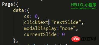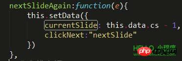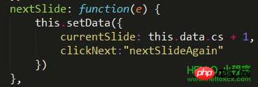 再看下 nextSlide 事件。currentSlide 是当前页面的 index,改变它即可完成切换效果,可以看上图初始化数据时设置了 cs 是 0。