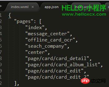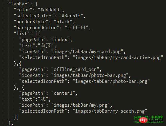 我们先找到 app.json 文件打开配置好这几个菜单,配置好 tabBar,这个直接把配置文件改成你自己设计的即可。