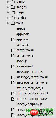 然后取数据 require 进来即可,这一点使用很方便;Images:图片路径;Page:除 tabar 以外的页面;Servise:服务交付层(与后台联调真实数据时使用); Wxss:一些公共的 css 文件;看到这里大家发现每个页面都被连带好三个不同的后缀。分别页面,css,js 目前只能依照这样,是微信应用号的一个规范吧。