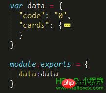 Json 文件配置好后,根据项目进行文件创建。Demo:存放的是假数据,这一期的开发工具支持 require,假数据使用的是 .js 文件形式,里面的数据结构 json 一致,把 data 暴露出去即可