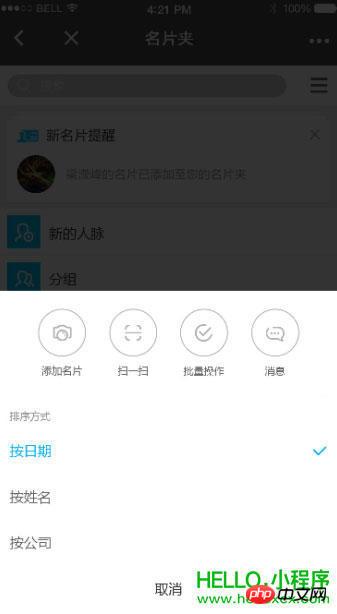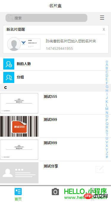 左边的 ABC 跳转(还在继续完善中)。这里还有个左滑删除名片功能,微信没有提供这个在移动端很实用的功能真的比较遗憾,后面得花点时间自己写下(后续完善)。