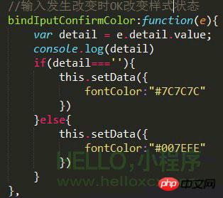 当里面的输入框内容发生改变时 bindinput 事件,大家别使用 bindchange 事件,这里的 bindchange 事件只有当失去焦点时才会被触发。
