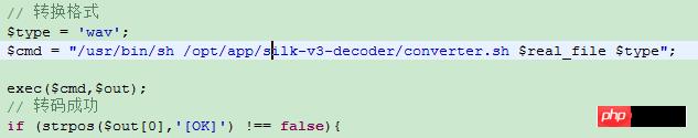 $real_file即为转码后的音频文件的绝对地址,建议转换成WAV格式,amr格式转换不成功,原因未知。