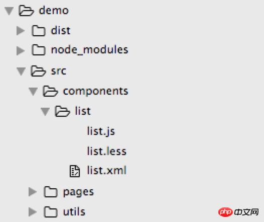 重用组件最需要解决的问题是组件的逻辑代码怎样重用。在实例代码中有一个src/components目录,用来存放项目内的可重用组件,其结构是这样的: