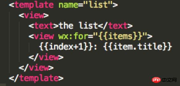 XML文件对应微信的WXML文件,是组件视图描述文件,list.xml内容为: