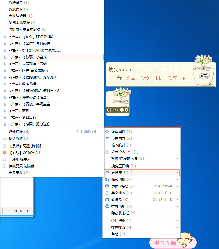 1、我们将输入法切换到搜狗输入法,然后右击===更换皮肤===这里就有一些推荐的皮肤,要是大家觉得还是不符合你的心意,可以点击更多皮肤
