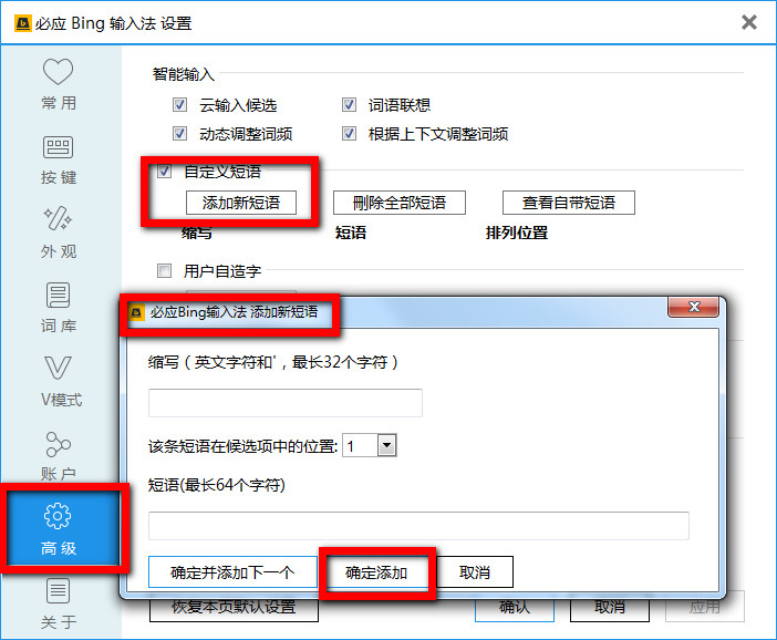 第三步:在“高级”中,找到自带短语,大家有时候不知道怎么打特殊符号或者一些特殊的字的时候,可以好好的在这里找下,应该有大家需要的