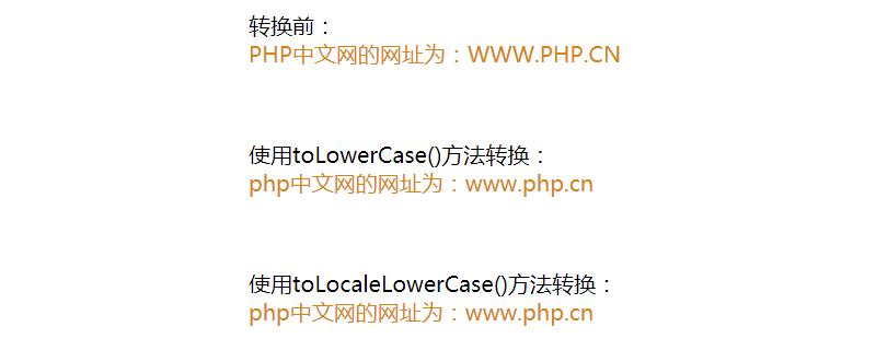 简单示例:使用toLowerCase()方法把字符串“PHP中文网的网站为:WWW.PHP.CN”转换为小写字母。