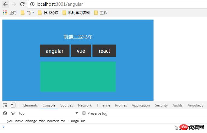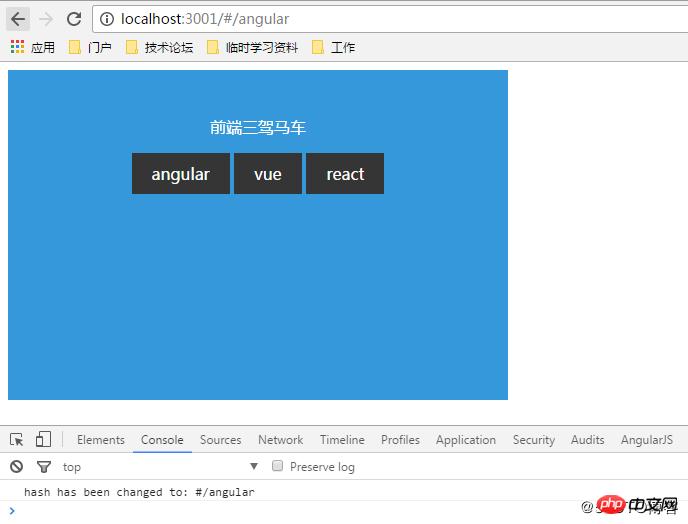 下面通过一个实例看一下,当点击angularjs的连接时,可以看到控制台打印出了相应的信息。
